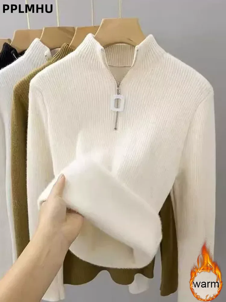 Verdicken Samt Rollkragenpullover Frauen Koreanische Mode Gefüttert Warme Sueter Gestrickte Pul...