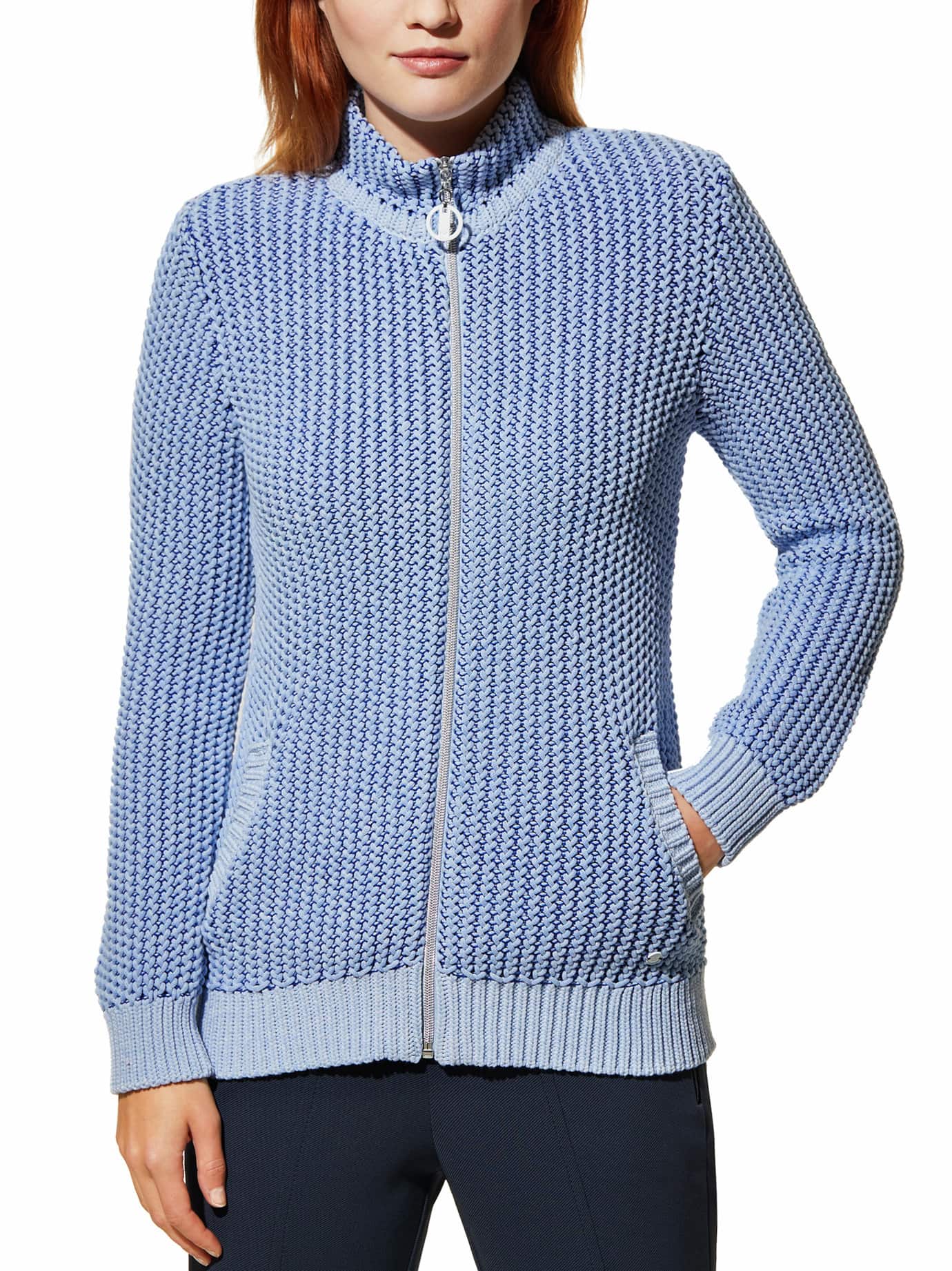 • Walbusch Damen Reliefstruktur-Strickjacke Blau mehrfarbig