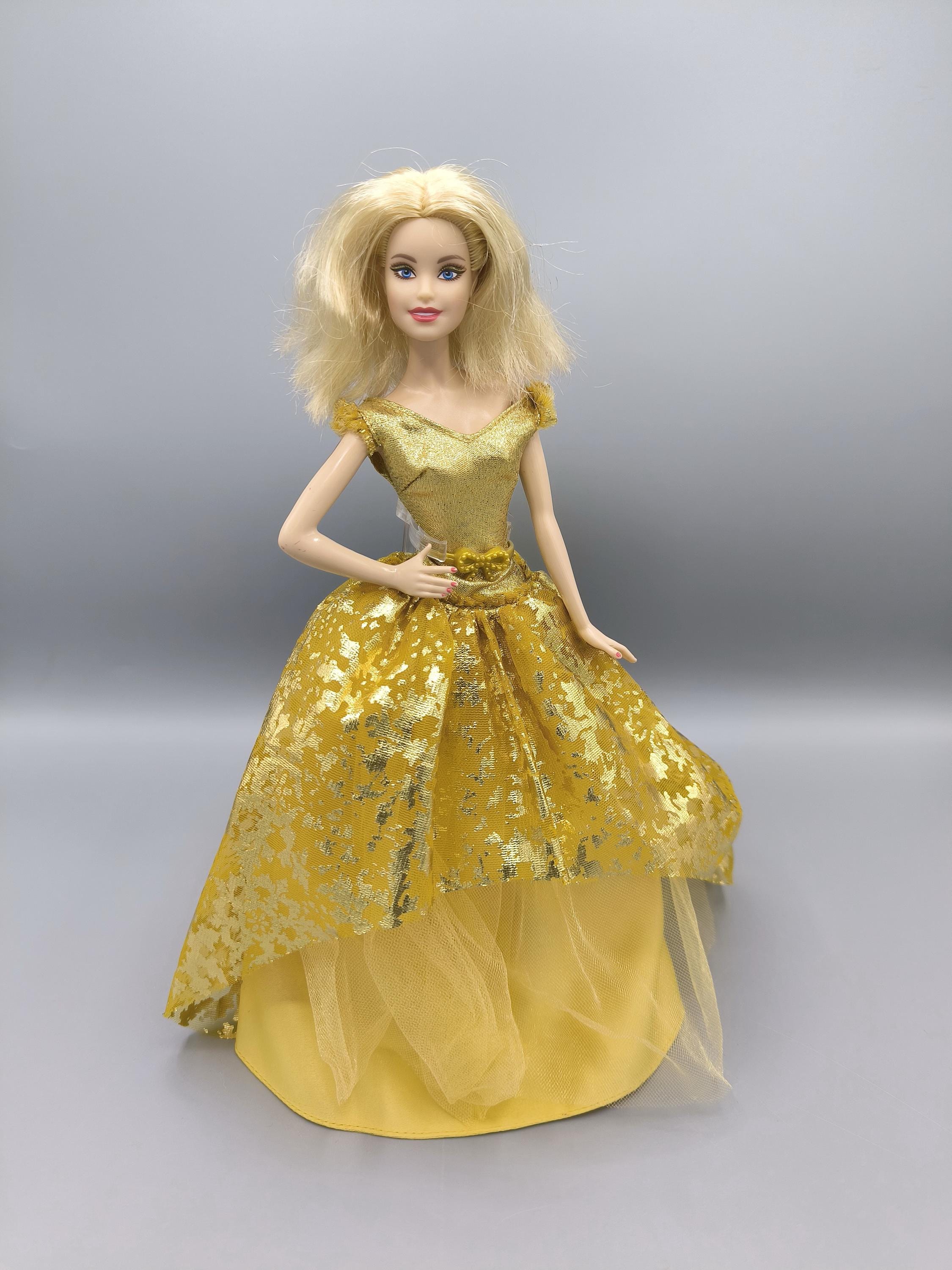 Holiday Barbie 2020, Sammlerstück Barbie in einem gelben und goldenen Kleid. Diese Puppe hat Fe...