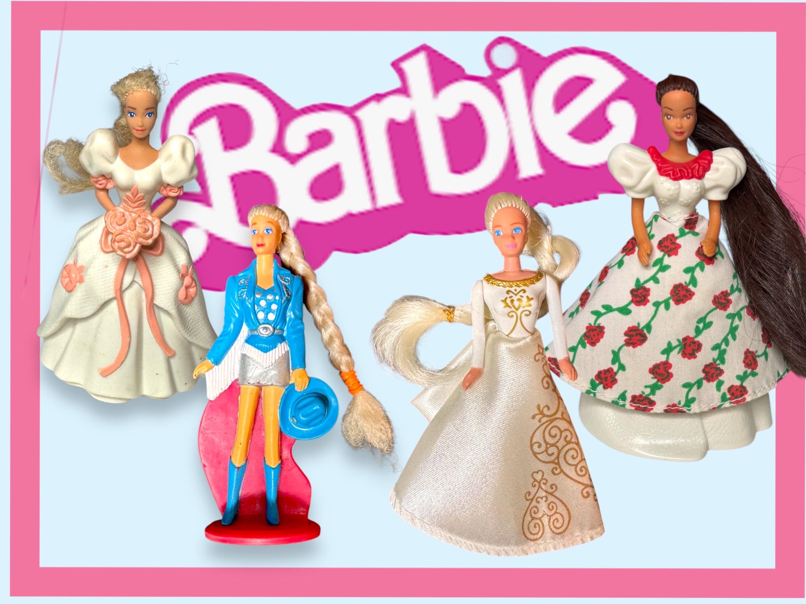 Diese Sammlung umfasst vier Pre-loved Barbie Mini-Puppen aus der Golden 'Happy Meal Spielzeug- Fkett...