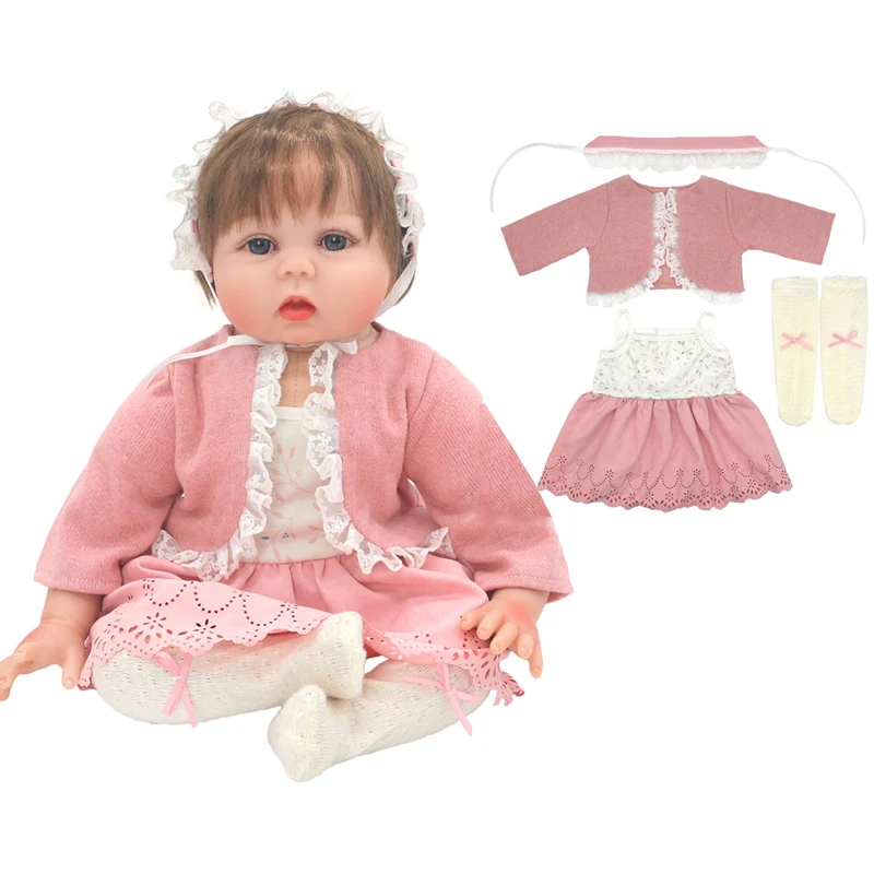 55 cm Reborn Baby Puppe Kleidung Rosa Strickjacke Kleid Kappe 22 &q...