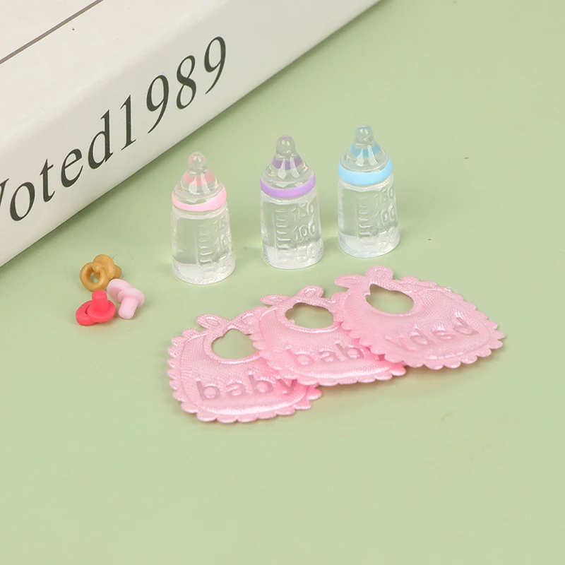 1:12 Puppenhaus Miniatur Babyflaschen Schnuller Lätzchen Set Kinderzimmer Zubehör Geschenk