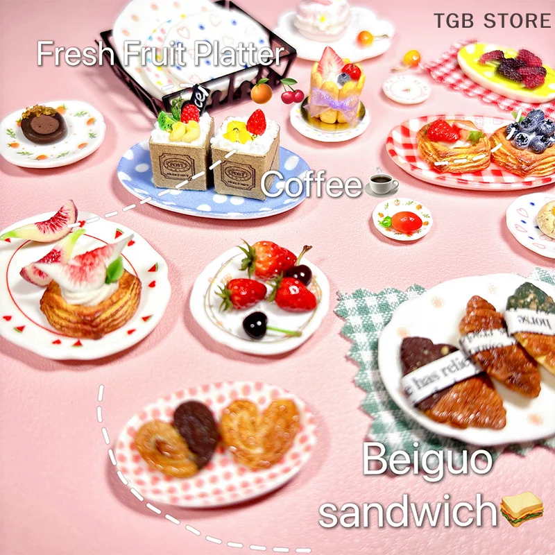 5pcs Puppenhaus Cartoon Essen Teller Puppenhaus Mini Küchen teller Dekoration Puppen Haus zubeh...