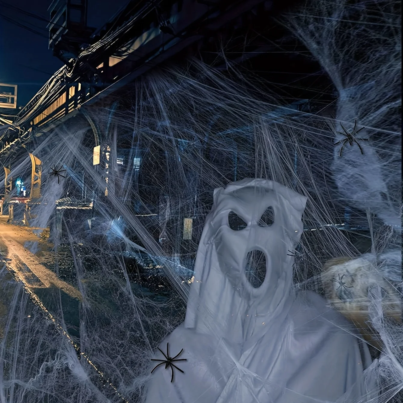 40g Spinnennetz 4 Spinnen-Halloween Spinne dehnbares Dekor für Outdoor-Halloween-Spaß und...