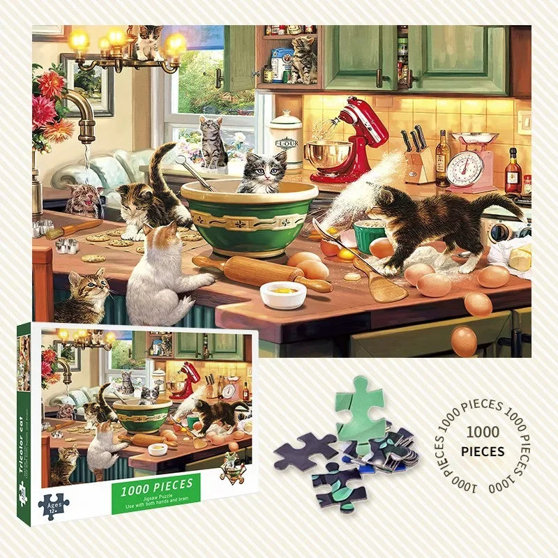 75*50cm 1000 Stück Puzzle 1000 Teile Küche Katzenpuzzle J...