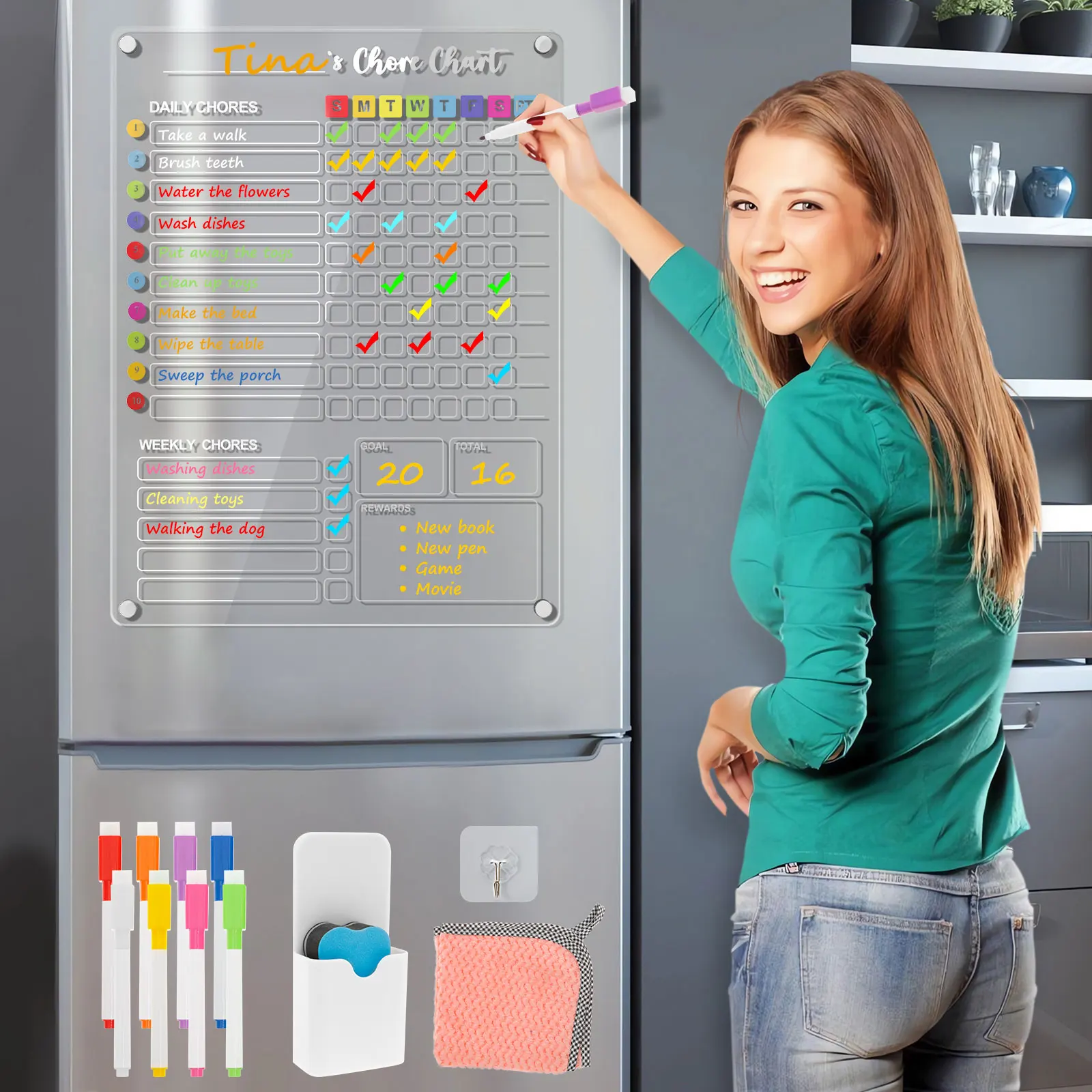 Magnetische, trocken abwischbare Tafel, Wochenplaner, Tafel, Kühlschrankmagnet, Erinnerung, Mem...