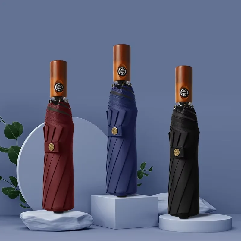 10K Holzgriff Vollautomatischer Regenschirm für Herren Dreifac...