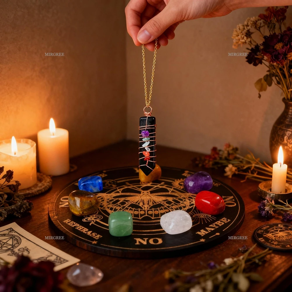2 Stück Kristall-Pendel-Halskette mit Wahrsagetafel aus Holz, ein spirituelles Werkzeug fü...