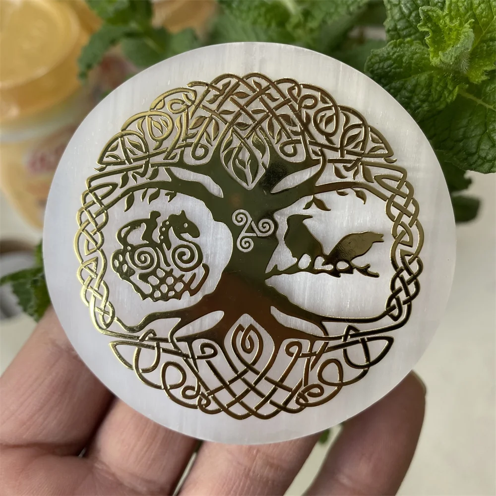 Natürliche Selenit scheibe Platte weißer Gips 7 Chakren Blume des Lebens Lade platte Yoga...