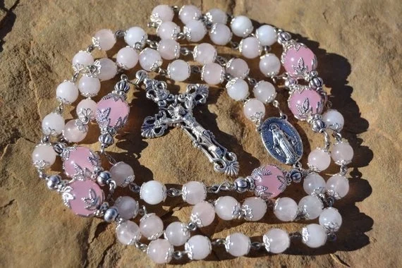 Heirloom Rosa Rose Quarz Katholischen Rosenkranz