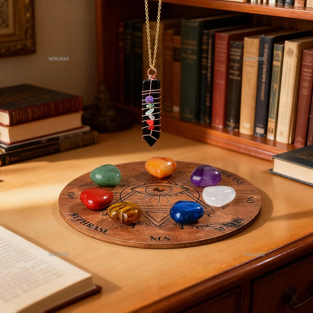 9 Stück Wahrsagerei-Scheiben aus Holz mit 7 Chakra-Kristallen und Pendel, geeignet für spi...