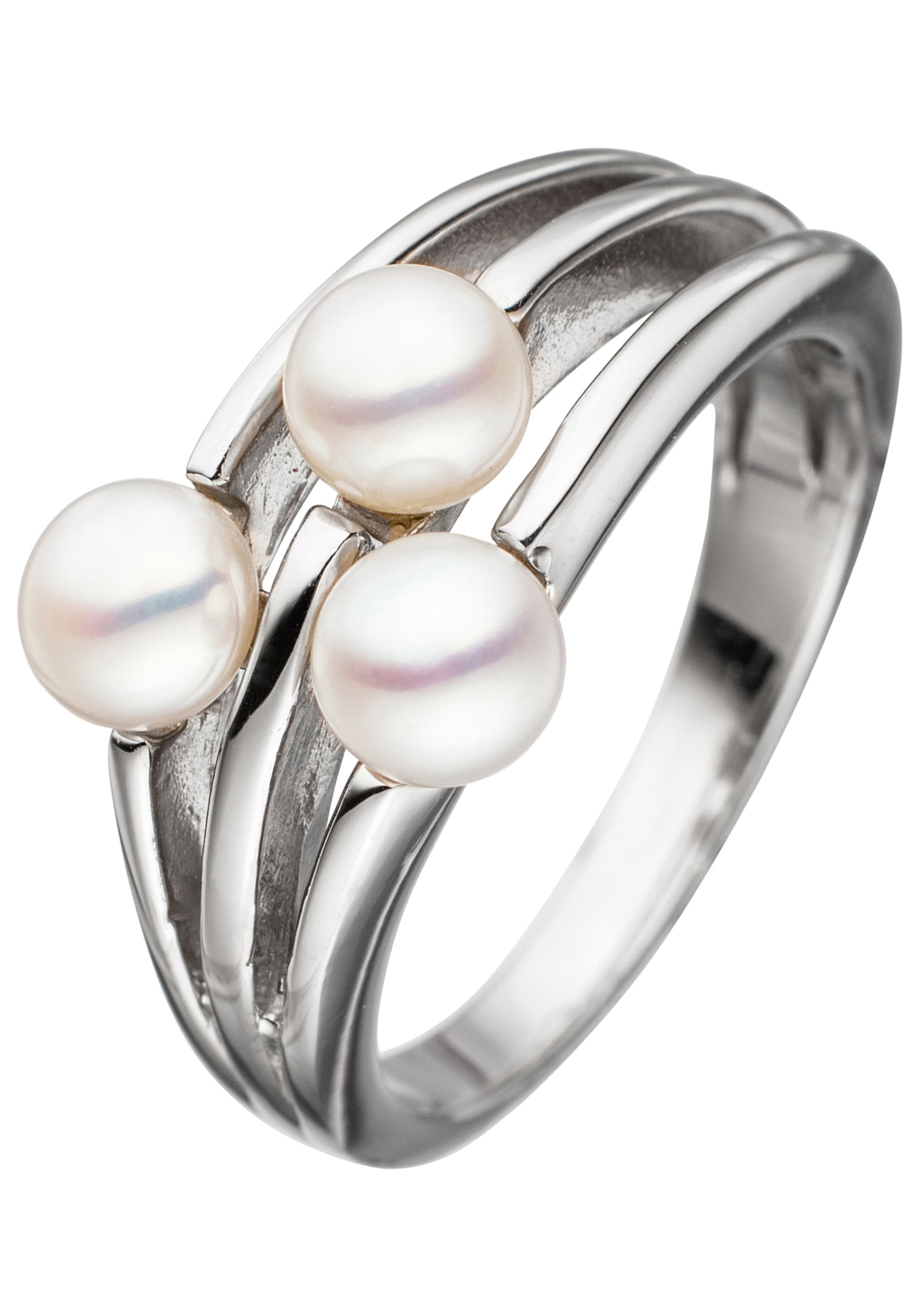 Damenring aus 925 Sterlingsilber, rhodiniert, mit 3 Süßwasser-Zuchtperlen Breite ca. 11,7...