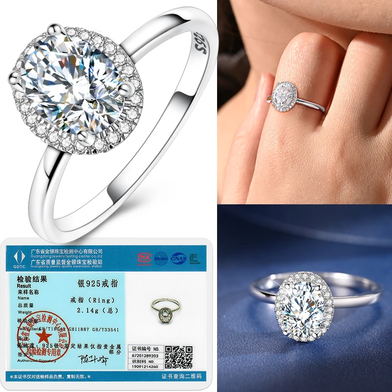 Klassischer Moissanit-Ring aus 925er-Sterlingsilber, 1,5 ct Ellipse, für Damen, brillanter Diam...