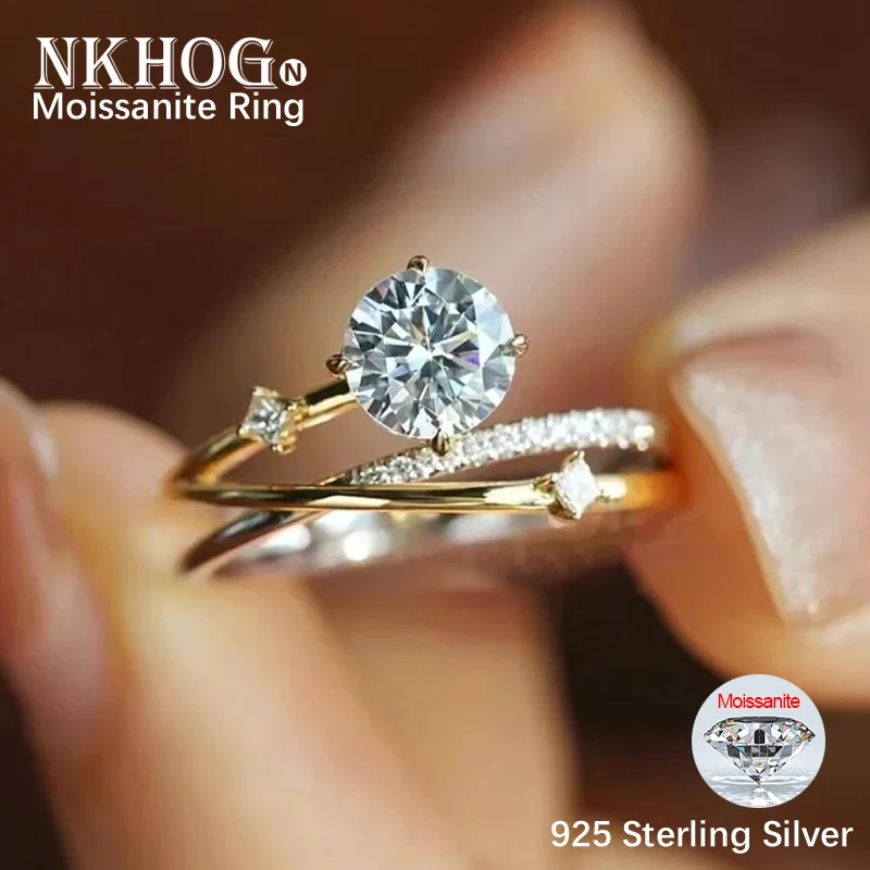 Nkhog 1ct Moissan ite Ring Sterling Silber Star Trail Frauen plattiert au750 Labor Diamant Verlobung...