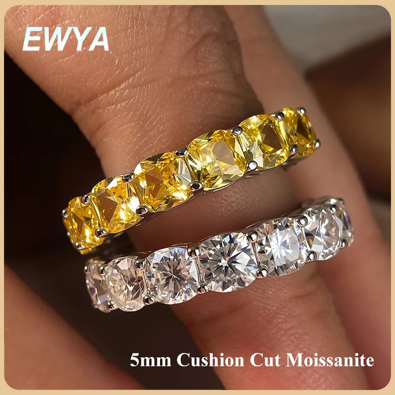 EWYA Luxus 5mm Cushion Cut Volle Ewigkeit Moissanite Diamant Ring Für Frauen Männer S925 S...