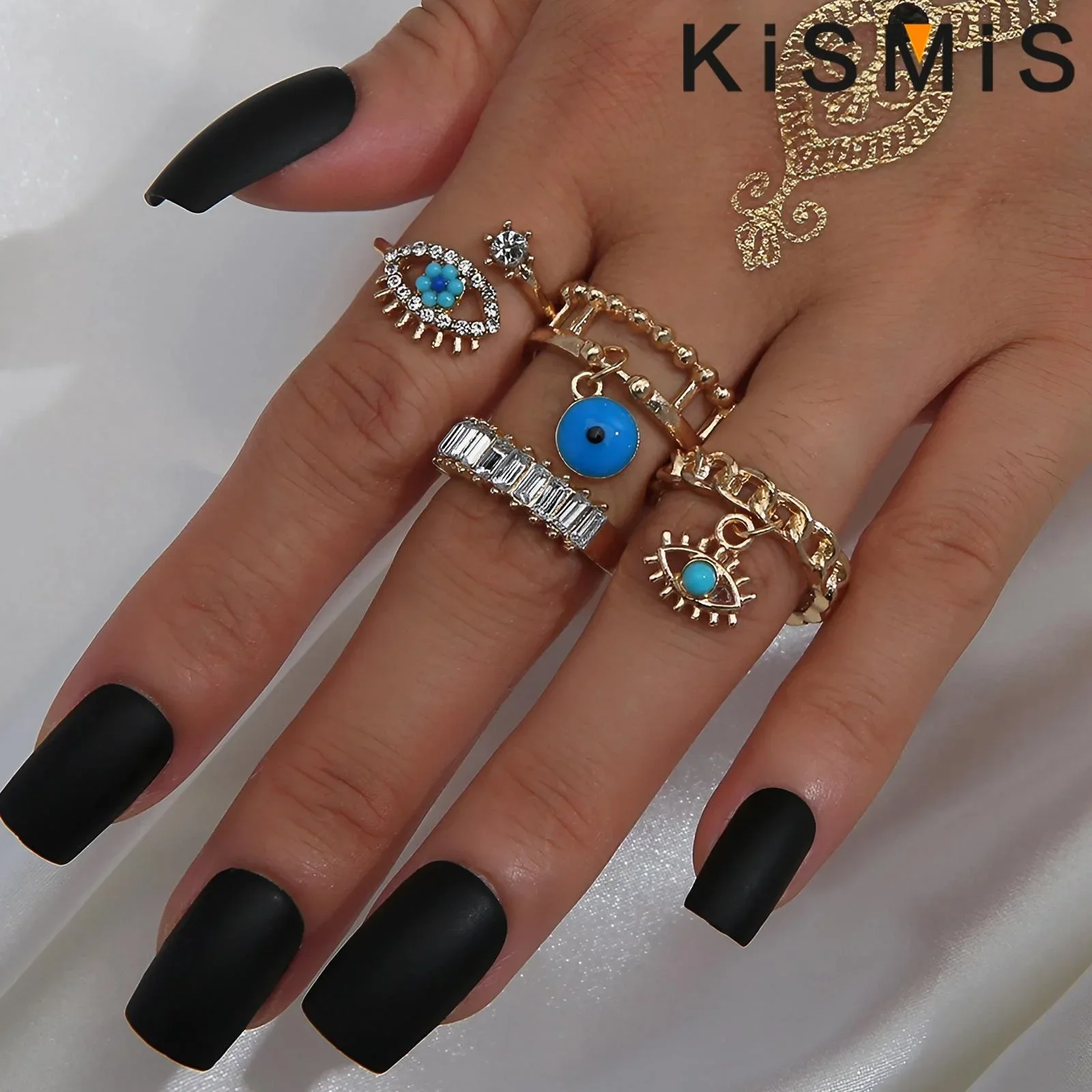 Punk Street Style Teufelsauge Diamant Ring Set für Männer Frauen Evil Eye Ball Fingerring ...
