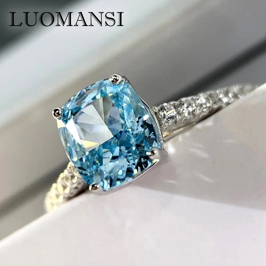 Luomansi 1,5 Carat Licht Saphir Diamant Ring Super Flash Schmuck S925 Sterling Silber Saphir Ringe H...