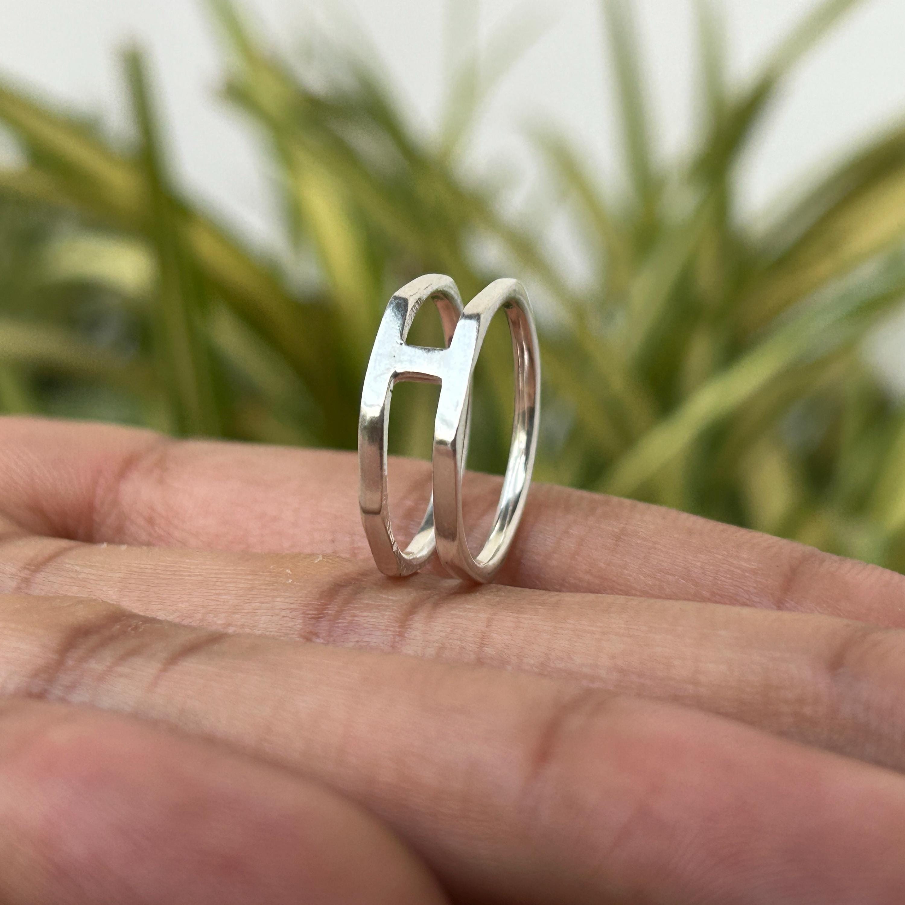 925 Sterling Silber Doppelband H Offener Buchstabe Minimalistischer...