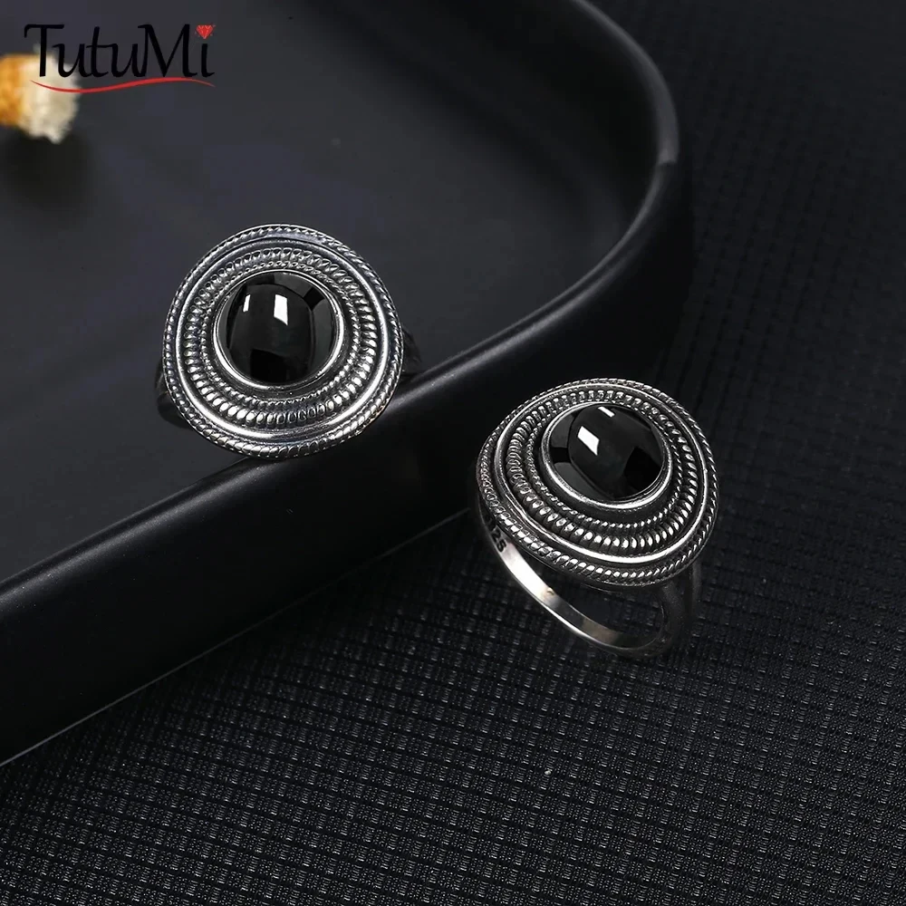 Vintage S925 Silber Schlangenförmige Ringe 10*12MM Natürl...