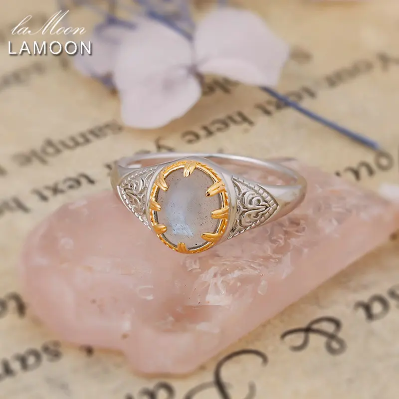 LAMOON Vintage-Luxusring im französischen Stil für Damen, natürlicher Labradorit-Edel...