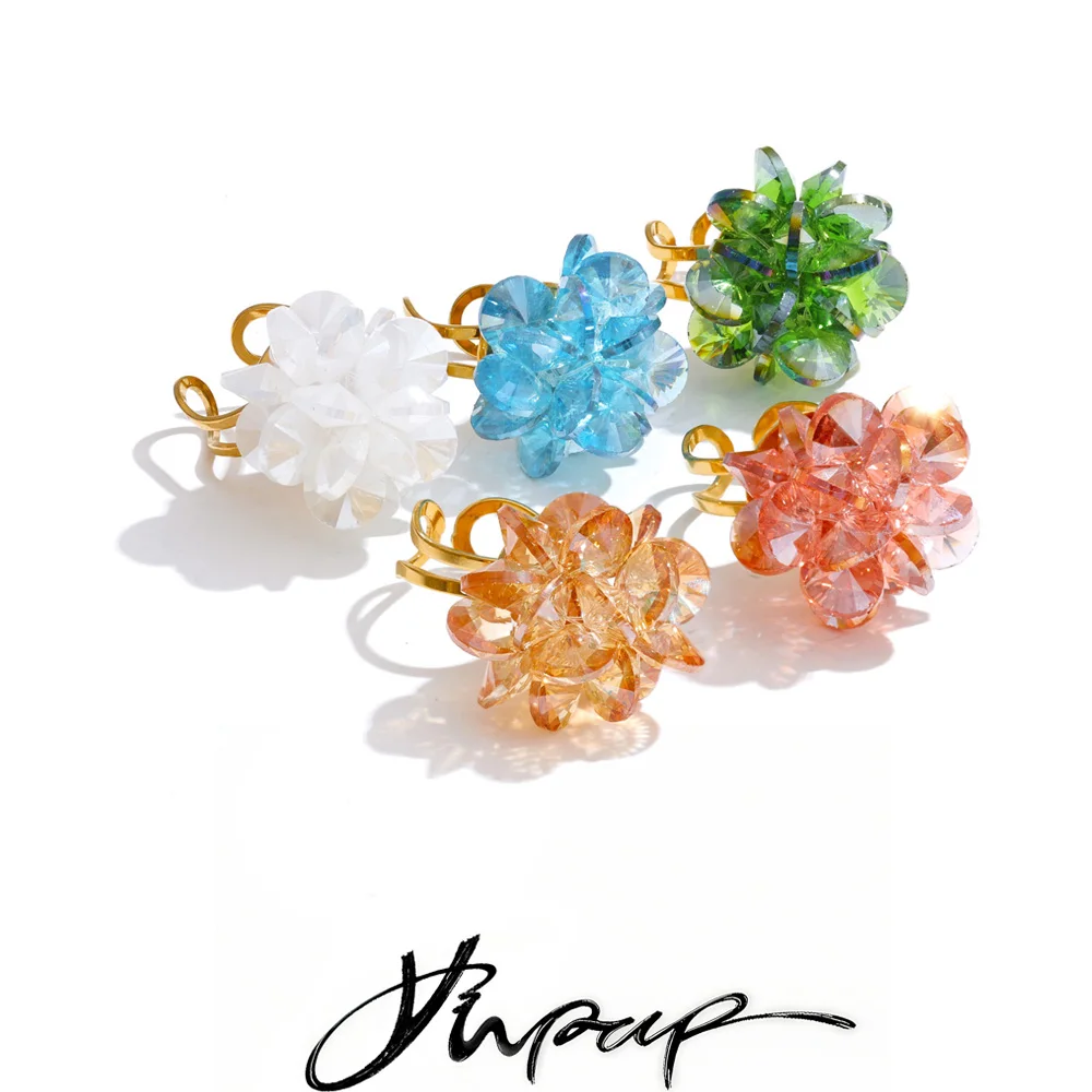 Yhpup Multi-Color Candy Sweet Big Crystal Ball Handgefertigter verstellbarer offener Ring Edelstahl ...