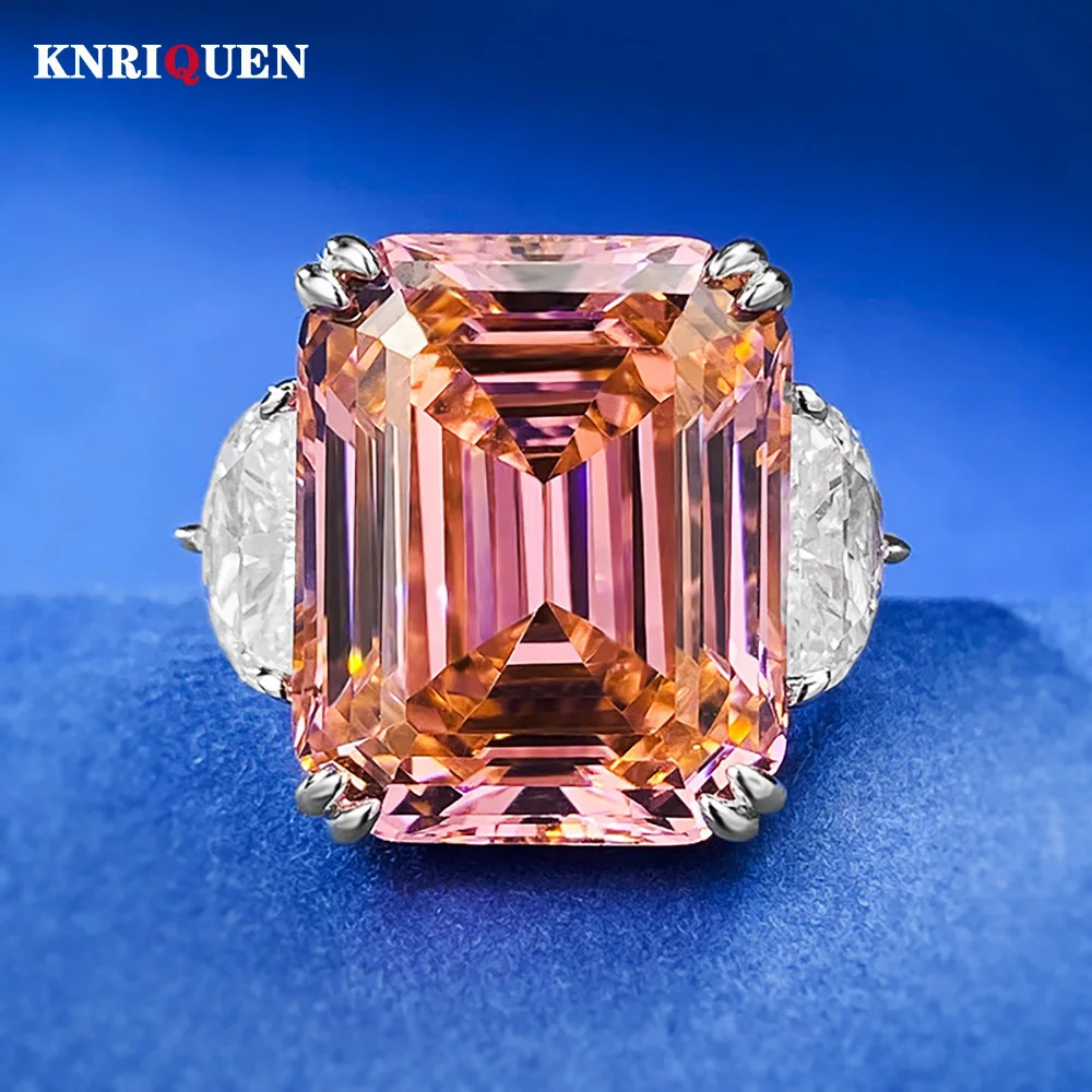 Luxus 13*16mm 15ct Smaragd Cut Rosa Orange Turmalin High Carbon Diamant Ringe für Frauen S925 S...