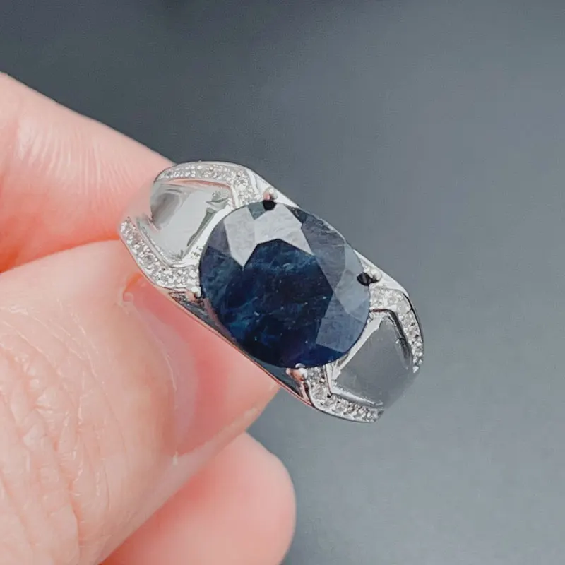 3 Karat natürlicher schwarzer Saphir-Ring für Herren, 9 mm x 11 mm, echter Saphir-Ring aus...