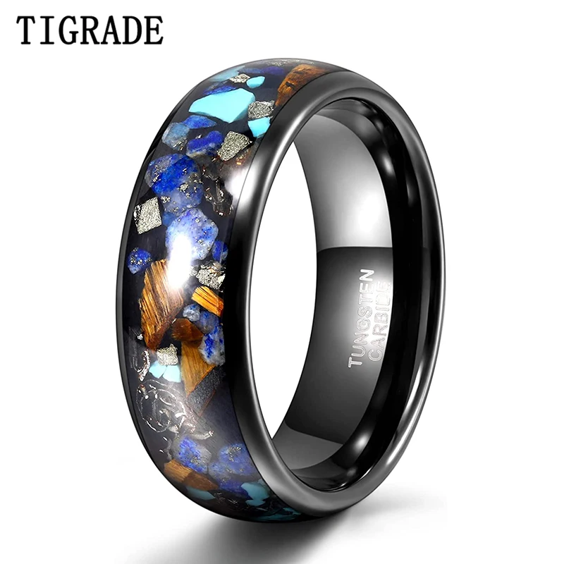 Tirgade 8mm Herren Ehering schwarz Wolfram Ring Galaxie Opal Ring natürliche Türkis und Ti...