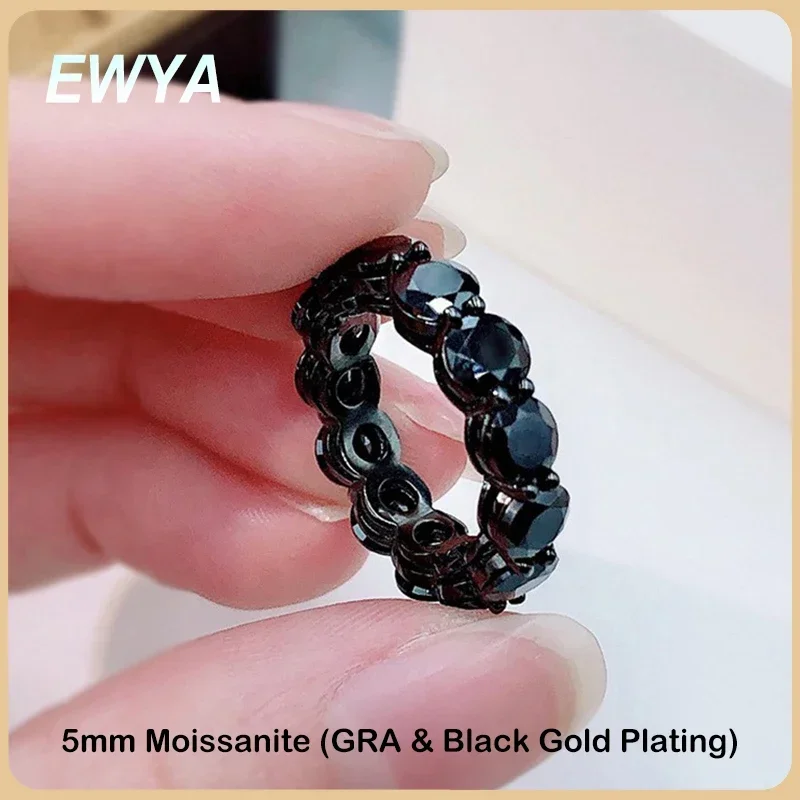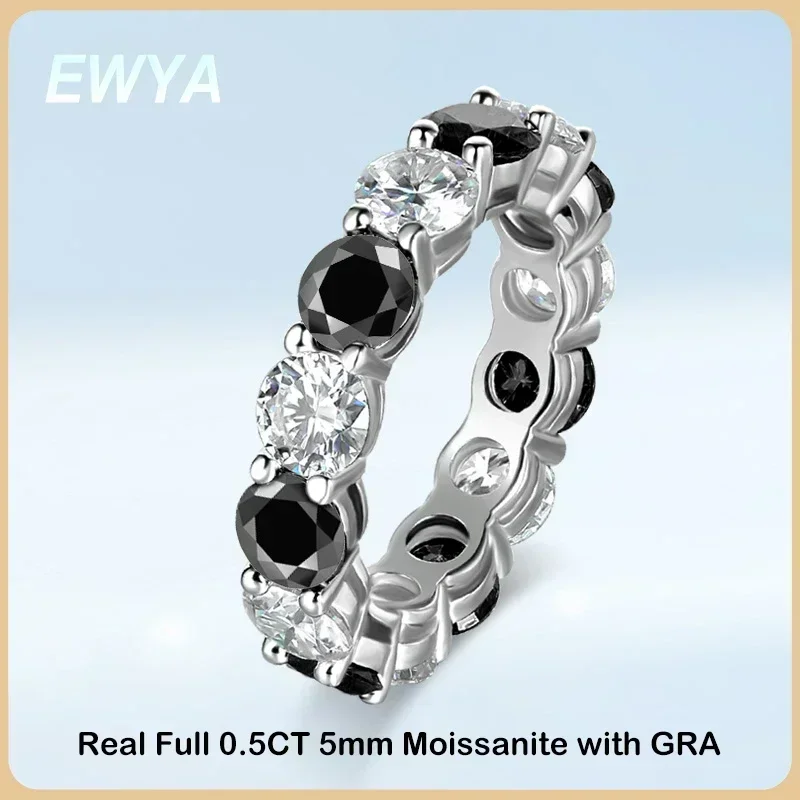 Ewya echte 5mm 0,5 ct farbige Moissan ite volle Ewigkeit Ring für Frauen Männer s925 Silbe...