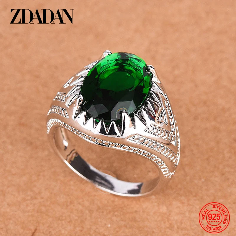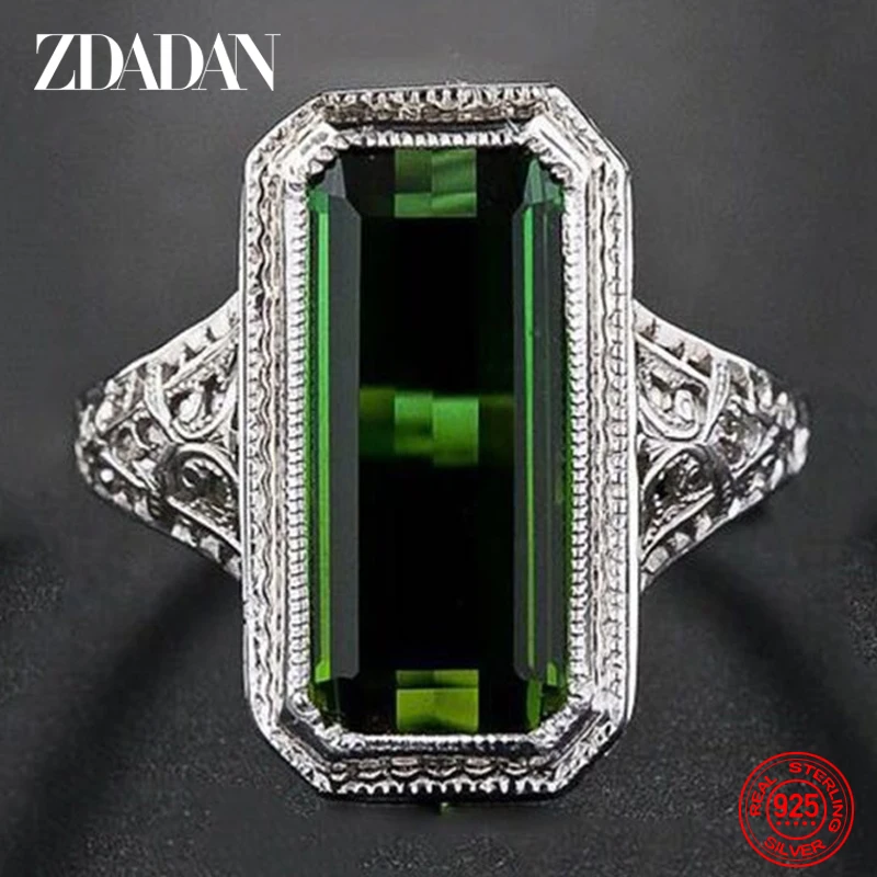 ZDADAN 925 Sterling Silber Smaragd Ringe Für Frauen Charme Schmuck Party Geschenk