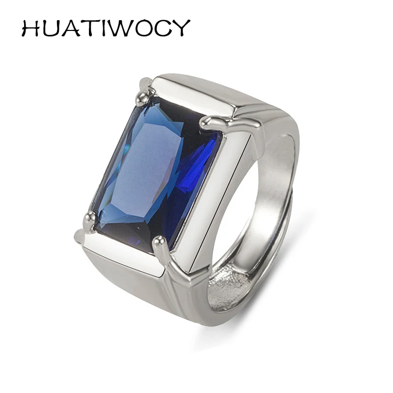 ZDADAN Ring aus 925er-Sterlingsilber, groß, quadratisch, Smar...