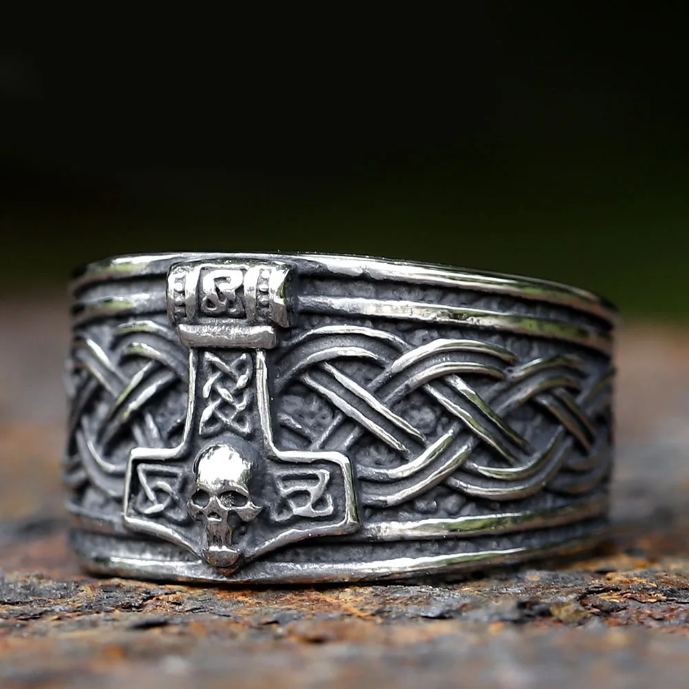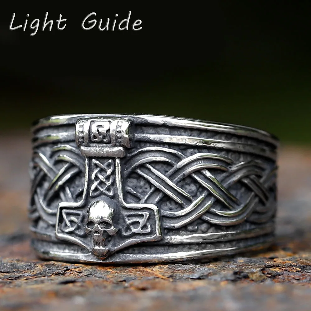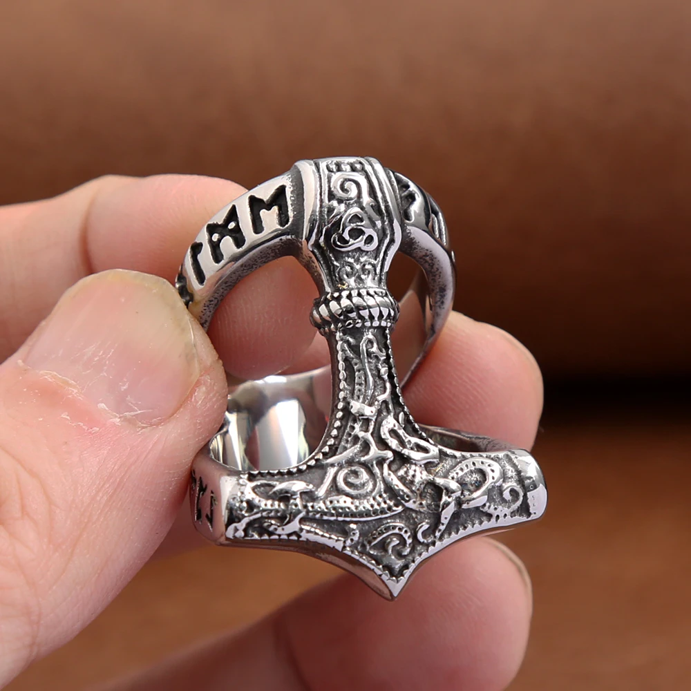 2025 Neuer Edelstahl Wikinger Thors Hammer Mjolnir Ring Herren Hochzeit Anels Damen Band Schmuck Ges...
