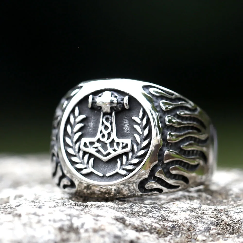 Klassische Vintage Viking Thors Hammer Ring Für Männer Edelstahl Nordic Odin Rune Ringe Mo...