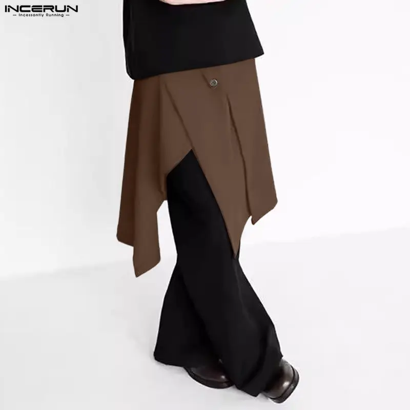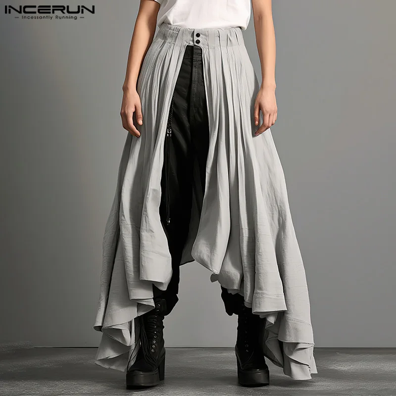 INCERUN Herrenröcke Einfarbig mit Knöpfen Lässige Unregelmäßige Röcke...