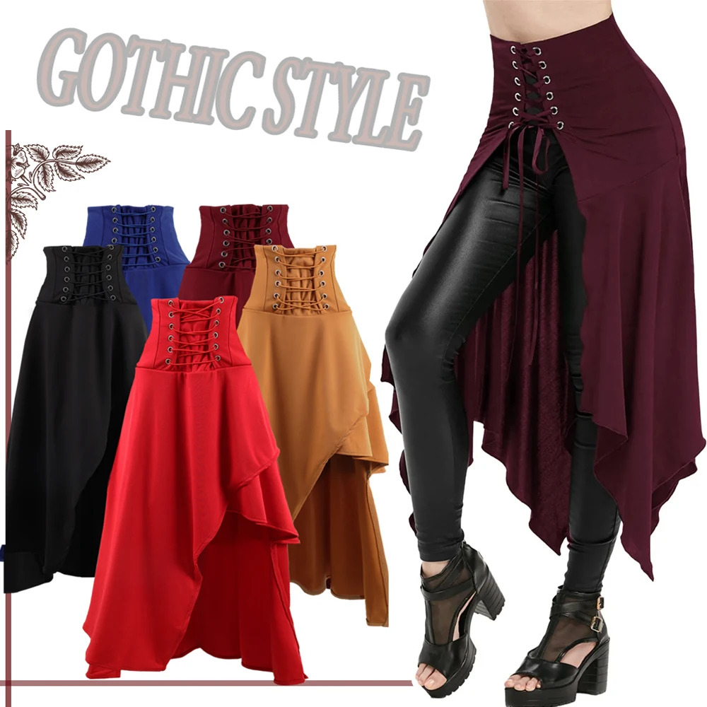 Steampunk mittelalter lichen Frauen Rock Halloween Vintage Frauen einfarbig schnüren hohe Taill...