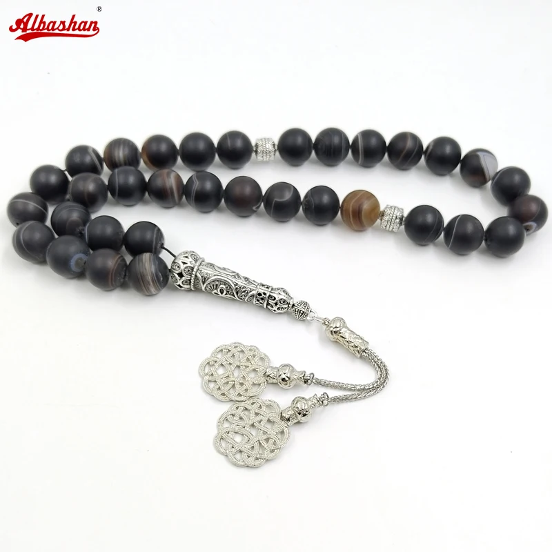 Großer Tasbih, natürlicher schwarzer Achatstein, 33 Perlen, arabisches Misbaha-Muslim-Eid...