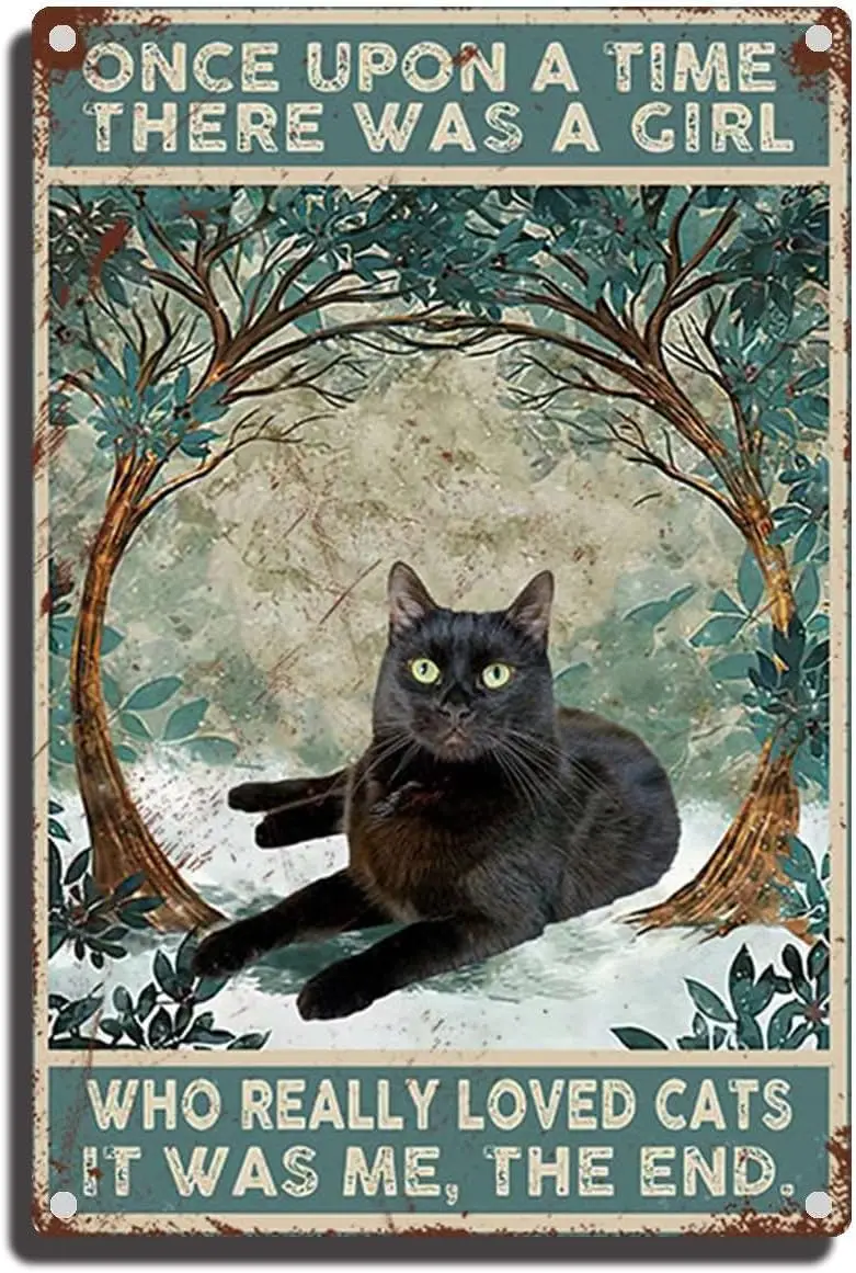 Lustiges Katzen-Wandposter, Metall-Blechschild, Once upon a Time, There Was a Girl Who Loved, Vintag...