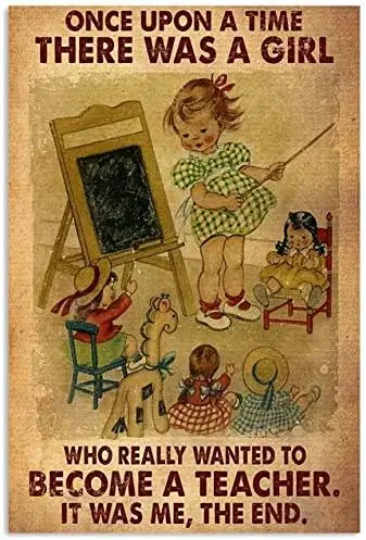 IN Once Upon A Time There was A Girl Who Really Wanted to Become A Teacher Retro Metallblechschild V...