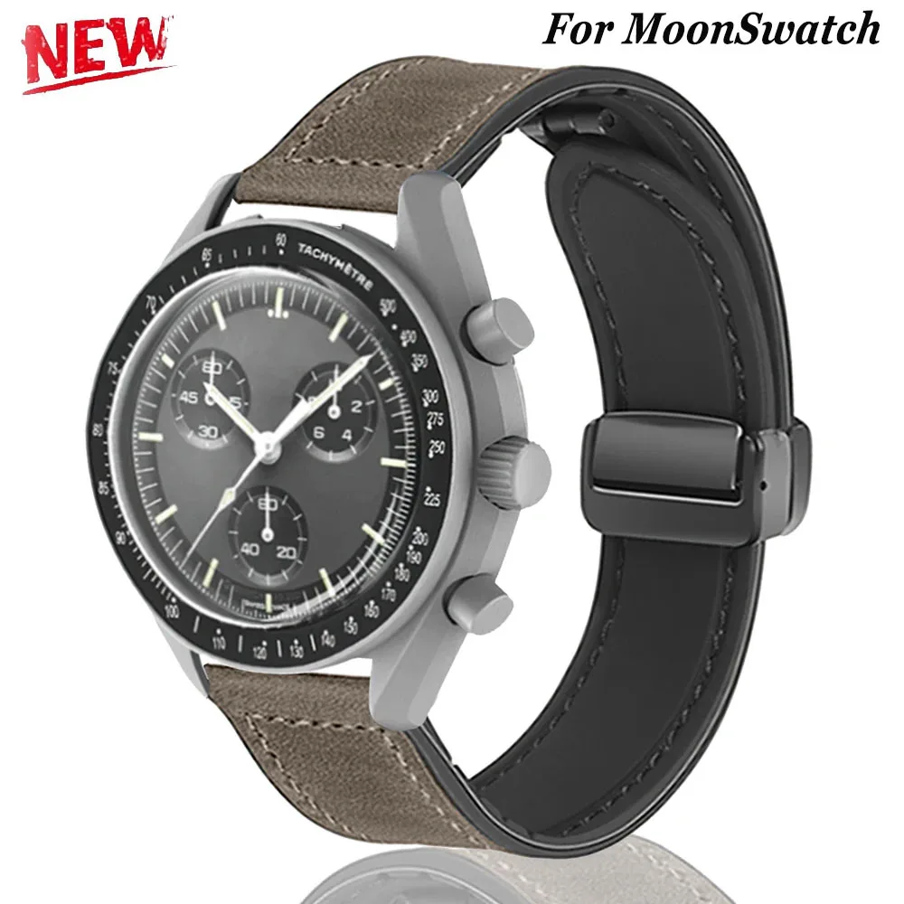 20mm Lederarmband für Omega X Swatch Joint MoonSwatch Planet Metall Magnetschnalle für Swa...