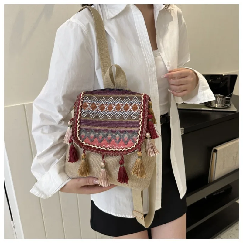 Frauen Rucksack Ethnischen Stil Große Kapazität Quaste Kleine Tasche Weibliche Vielseitig...