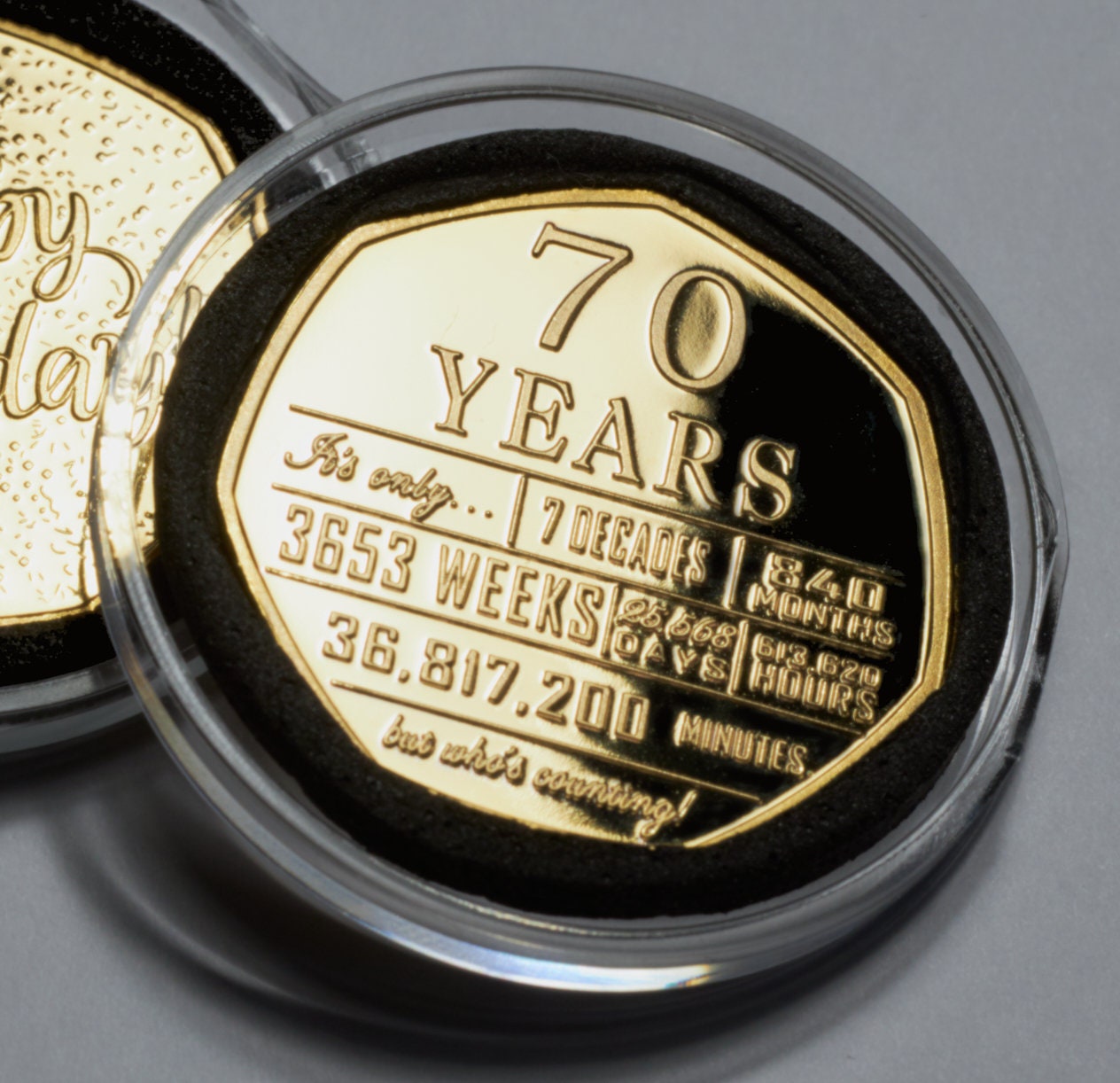 Gedenkmünze zum 70. Geburtstag aus 24-karätigem Gold in K...
