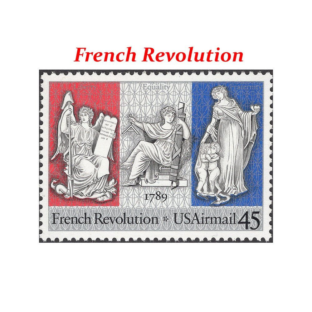 "5er Set Vintage unbenutzte US Briefmarken: Französische Revolution Briefmarke mit 45 Cent...