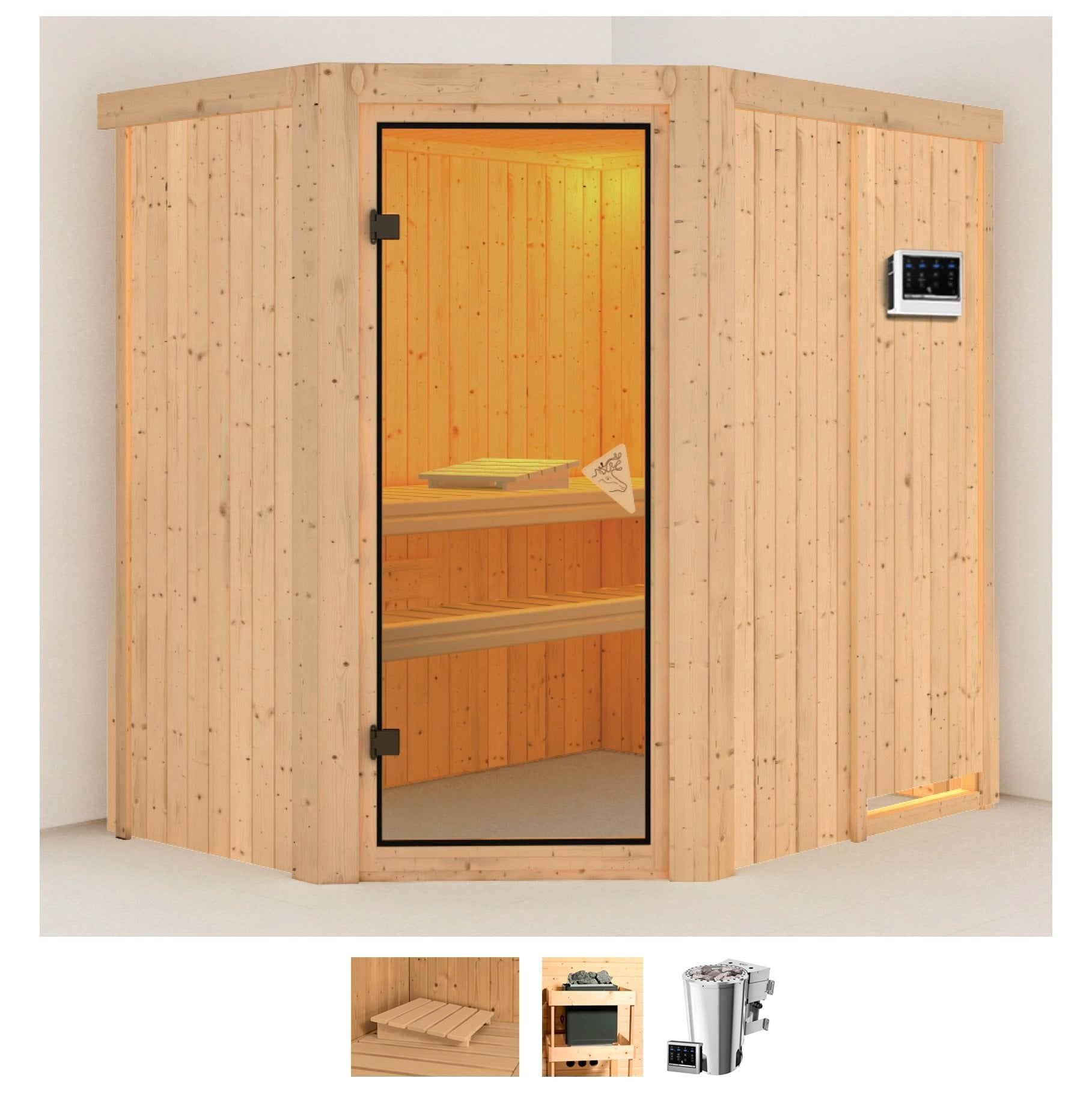 Sauna KARIBU "Finja", beige (naturbelassen), Bio-Kombiofe...