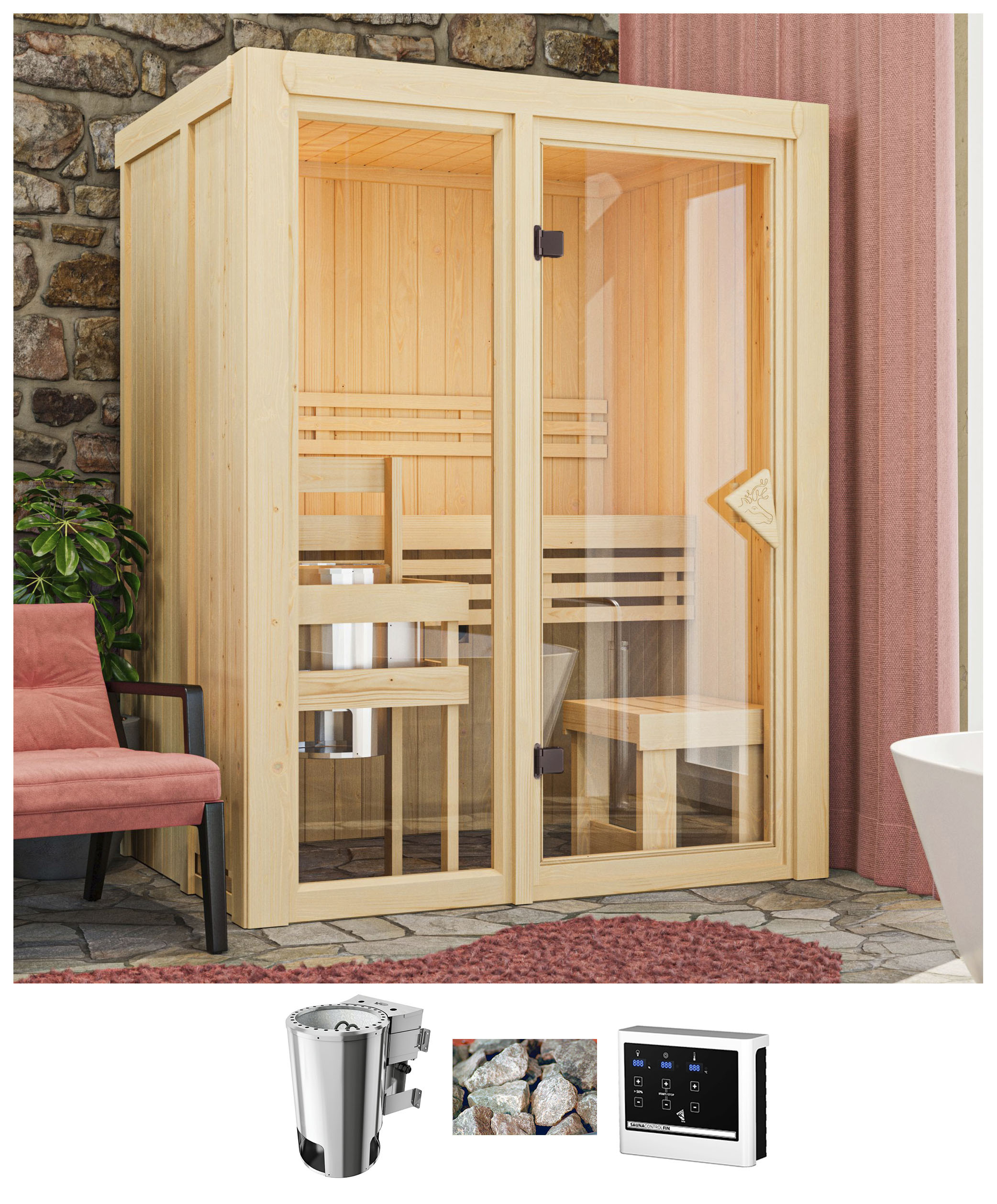 Sauna KARIBU "Alani 2", natur, Bio-Ofen, externe Steuerun...