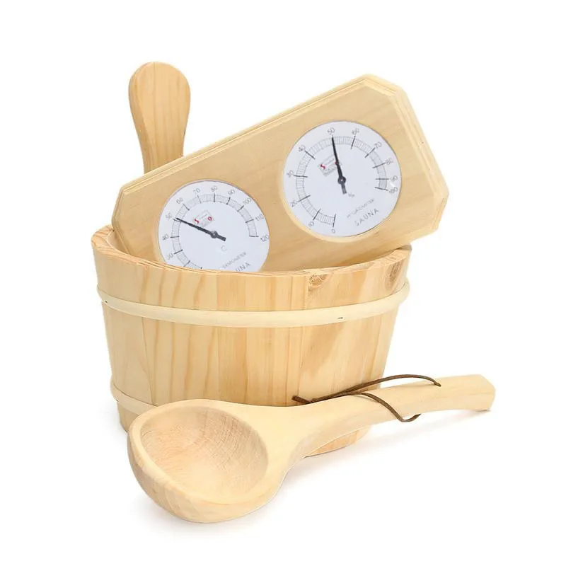 Thermometer Hygrometer + Schöpflöffel + Eimer 3 Stück/Set Sauna-Zubehörset aus K...