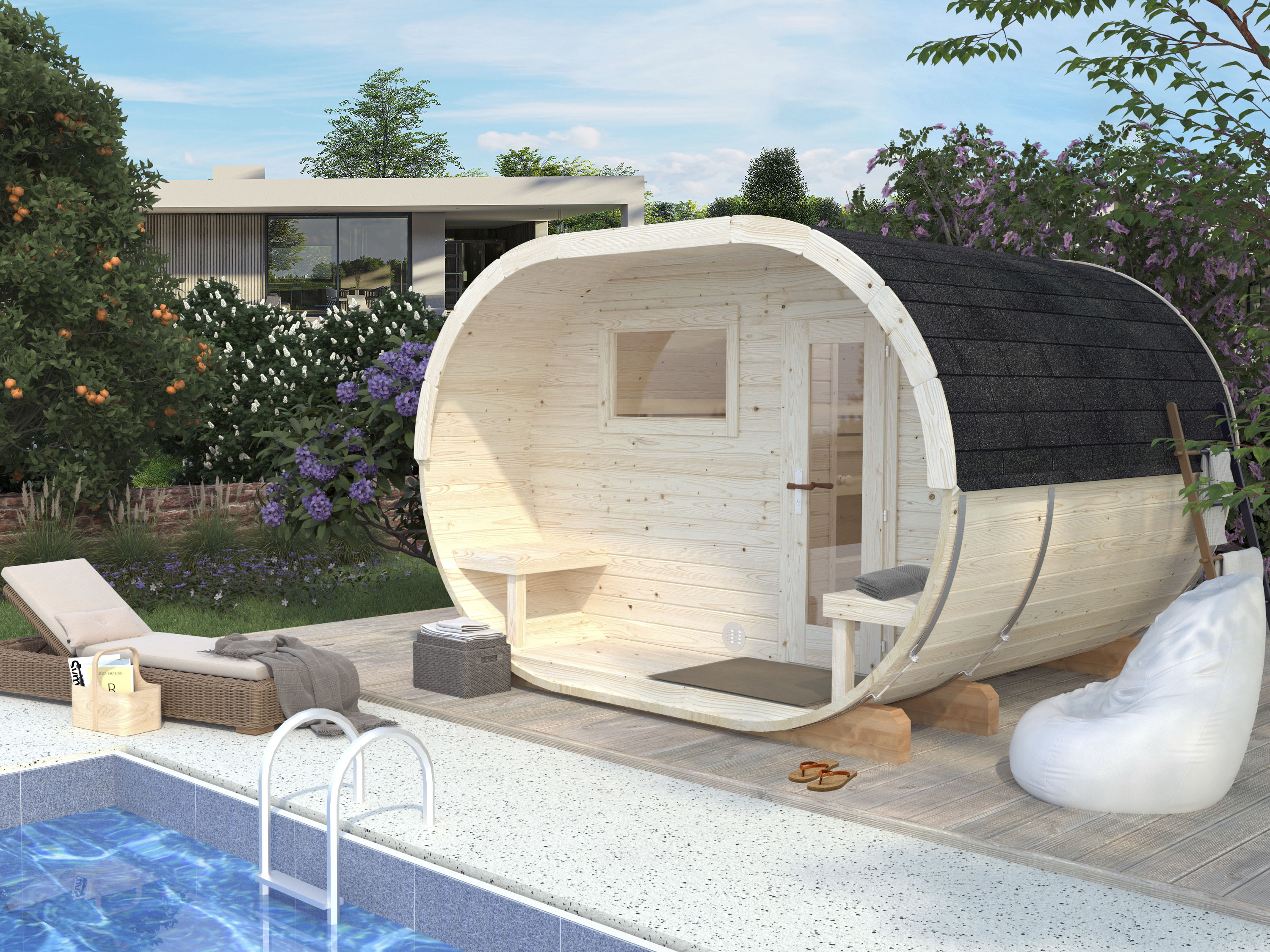 Fasssauna PALMAKO, beige (natur), ohne Ofen, (ohne Ofen), Saunen, 1...