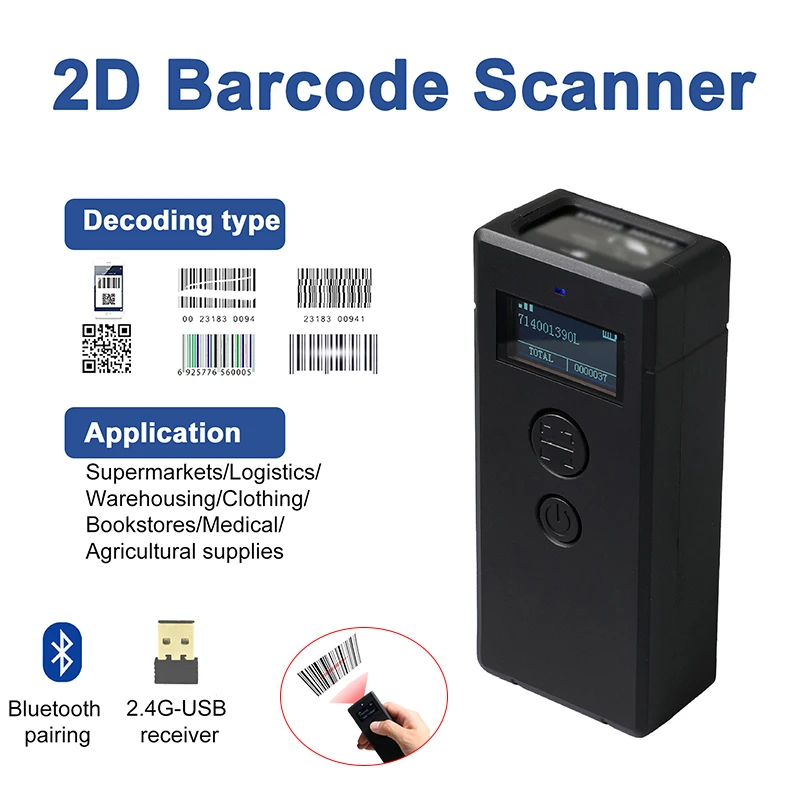 Bluetooth Mini Barcode Scanner 1D/2D 2,4G Wireless Barcode Scanner ...