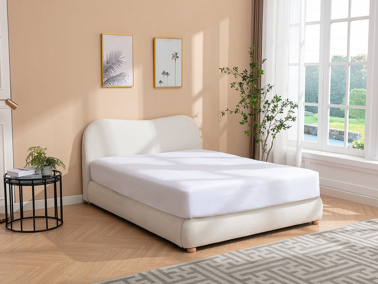 Bett mit Bettkasten - 140 x 190 cm - Bouclé-Stoff - Weiß - MAZIRI jetzt günstig on...