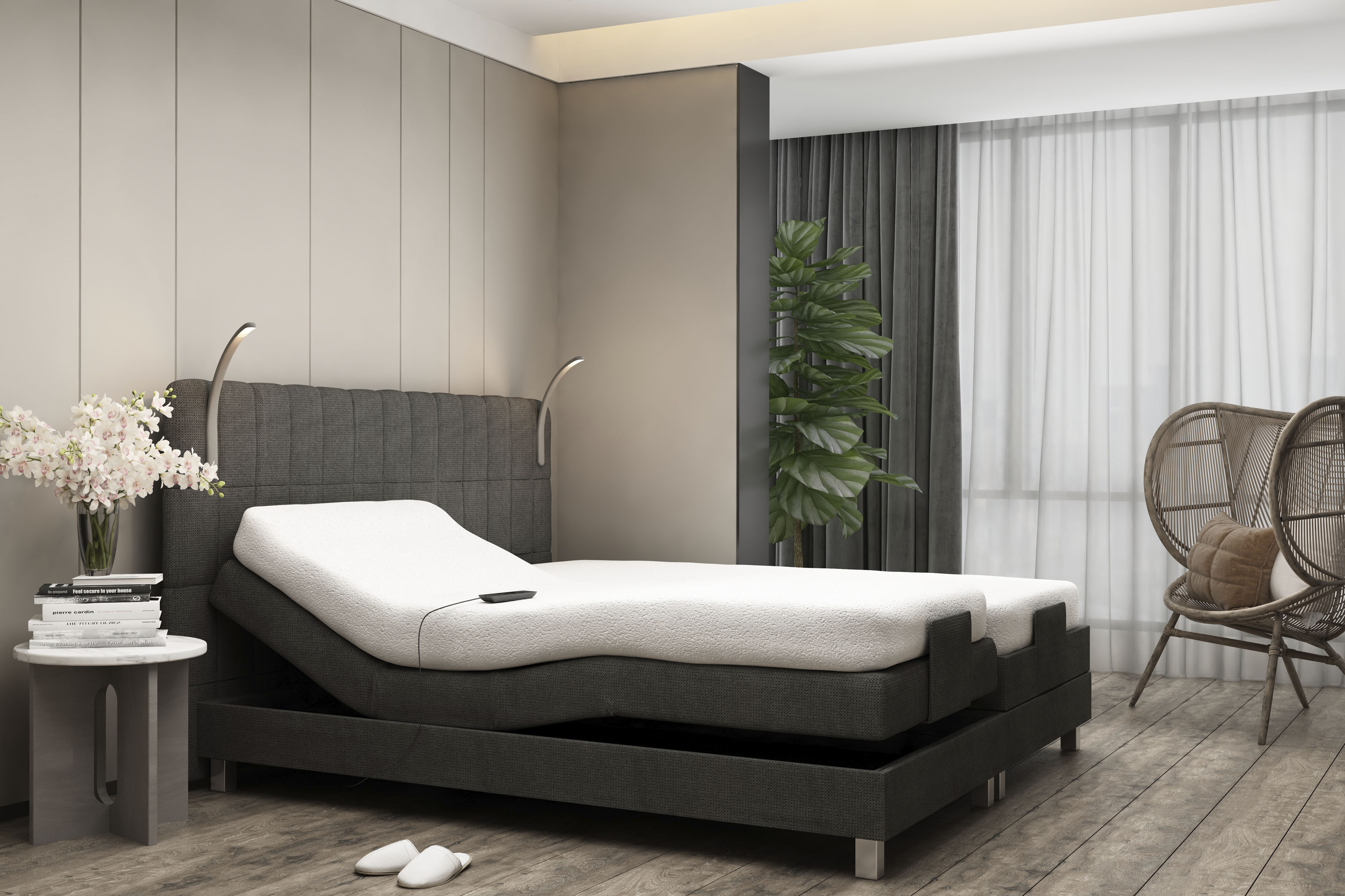 Boxspringbett, grau, B:214cm L:210cm, Bezug Unterbox und Kopfteil: ...