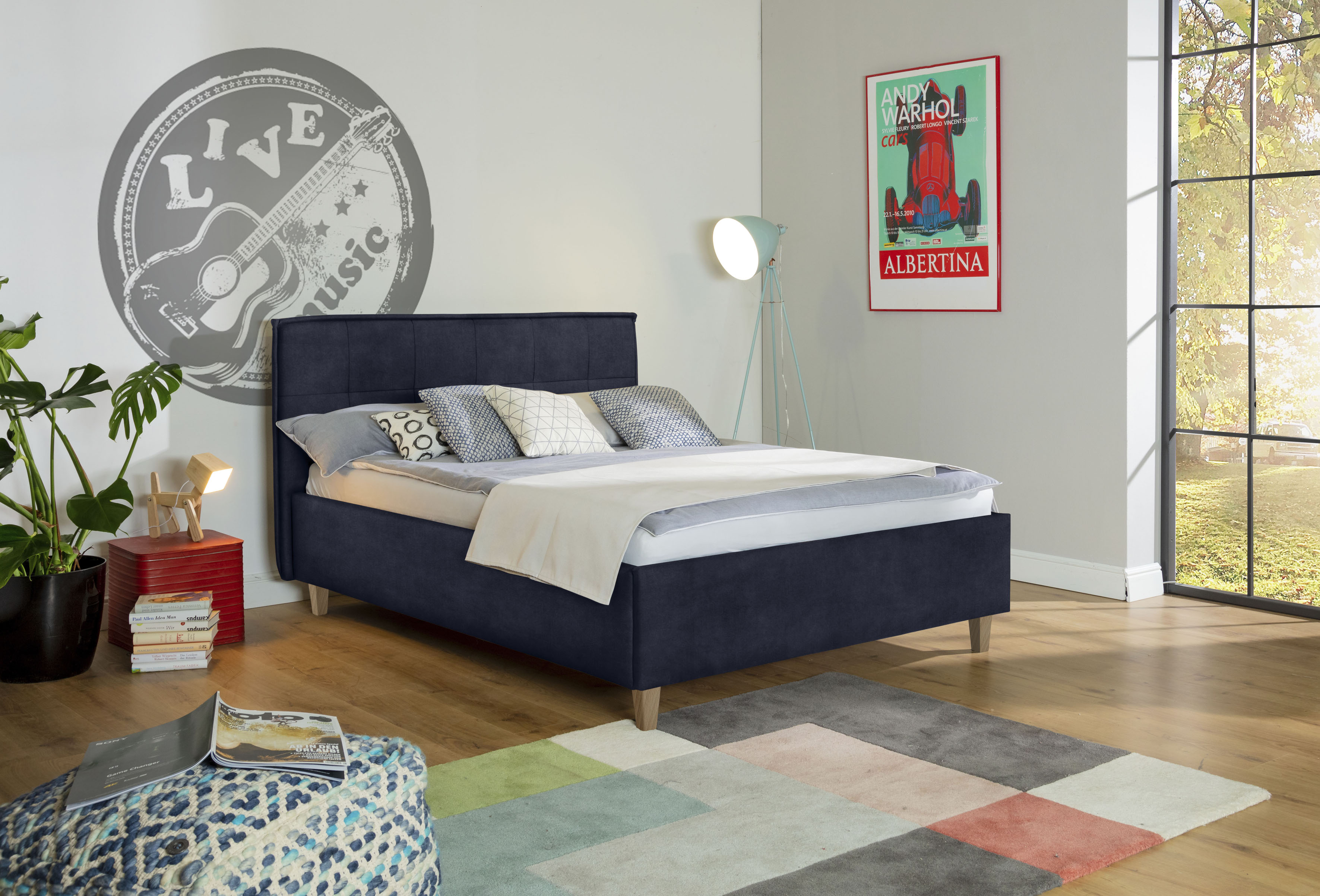 Polsterbett ALINA "Hakon", blau (blau dfn 96), B:161cm H:...